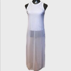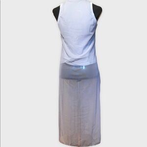 Transition your wardrobe seamlessly into Fall and Winter with this dramatic ZARA sheer mesh tunic. Its longline maxi length, high crew neckline, and sheer fabric make it the ultimate Witchy or Whimsigoth layering piece. The soft grey/white tone is subtle and mysterious, providing the perfect ethereal base to layer under chunky knits or over dark fabrics. This piece instantly adds a desired sense of moody drama and texture.