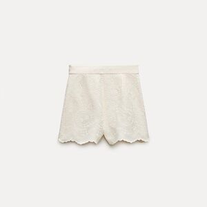 ZARA White Beige Nude Embroided High Wsisted shorts XL NEW