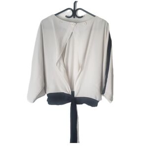 ZARA White & Black Contrast Tie-Back Blouse โ Size XS