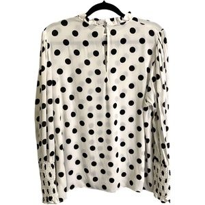 ZARA White Black Polka Dot Poet Sleeve Blouse Keyhole Back Ruffle Neck Sz XL
