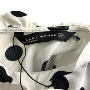 New with tags. Zara blouse, white with black polka dots. Size XL, see pictures for measurements.