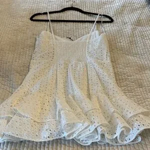 ZARA White Eyelet Ruffle Mini Dress