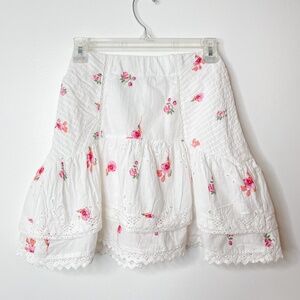 ZARA White Floral Mini Skirt Summer Cotton Lace Trim Ruffles Small