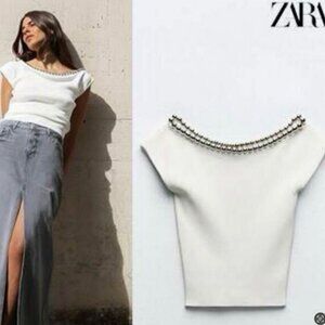 ZARA – White PLain Knit Ball Top – Size Small (NWT)
