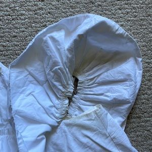 Slide staining on left side in the under arm area but easily hidden by sleeve that drapes onto arm (you can’t see it when it’s worn)