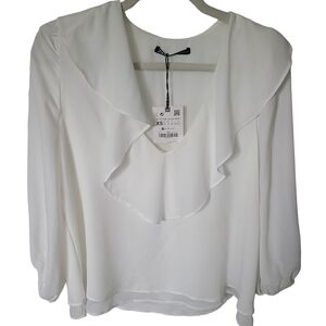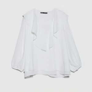 ZARA White Ruffled Collar 3/4 Sleeve Sheer Blouse Size XS NWT