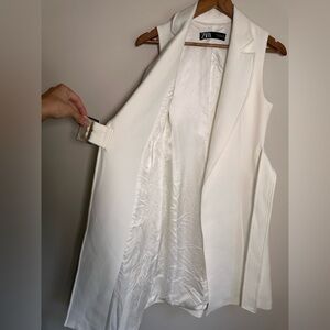 ZARA White Sleeveless Blazer Dress with Belt Structured Vest Dress