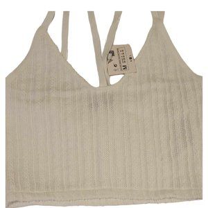 ZARA White V-neck - Double Cable Knit Crop Top Perfect for Spring and Summer