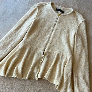 ZARA Woman Cream Peplum Zip Jacket with Gold Hardware L