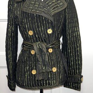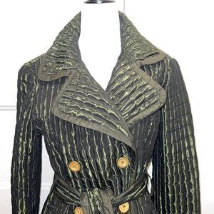 ZARA Woman Metallic Green Quilted Double Breasted Tied Trench Coat Size Medium