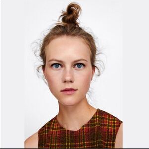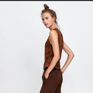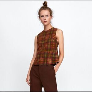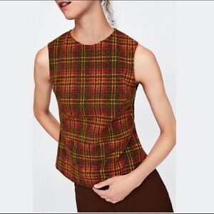 Zara Woman Orange Plaid Peplum Sleeveless NWOT