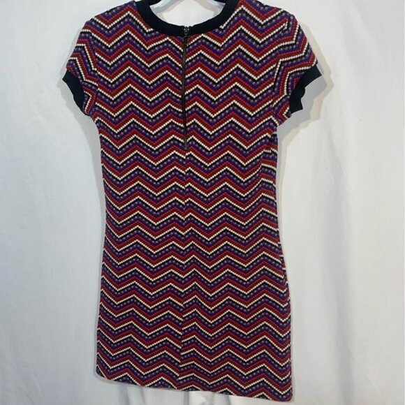 ZARA woman shift dress. Knit ribbed texted. Blue/red/white/black. Size medium. Stretchy.