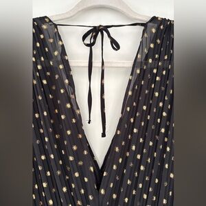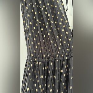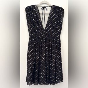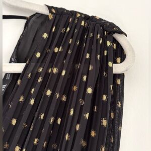 ZARA Woman's Small Pleated Black Dress Polka Dot Gold Sleeveless Metallic Mini