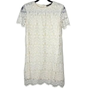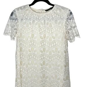 ZARA Womens Cream Lace Short Sleeve Shift Dress