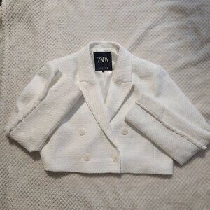 ZARA Women’s Cropped Double-Breasted Blazer – White – Size XL