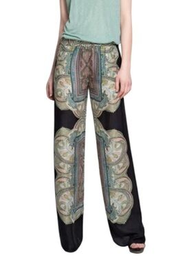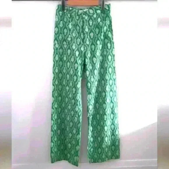 ZARA | Women's Green/White The Ava Boho High-Waisted Cotton Straight Leg Pants