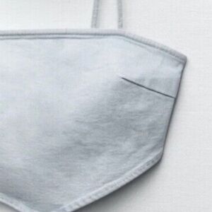 Zara Women's Light-wash Denim Bandana Cut Zipper Back Crop Top Blouse Sz Large