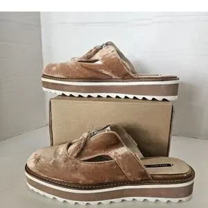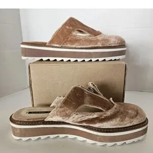 Elegant velvet mules with a platform sole. Perfect for versatile styling.