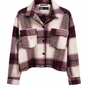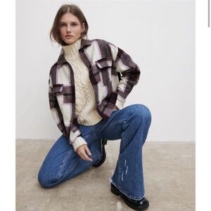 ZARA Womens Plaid Shacket in Cream/Purple│Size Medium