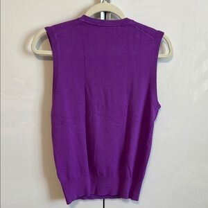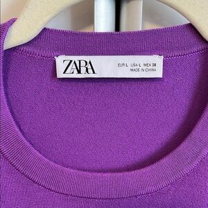 Elevate your wardrobe with this chic purple lightweight knit sleeveless top from Zara. Features crew neck with ribbing around neck and arm. Thick band along the bottom. Perfect for any occasion, this top offers both style and comfort. New condition but tag was cut out. It is a viscose blend material. There is a tiny flaw in knit shown in last pict but not noticeable when worn.