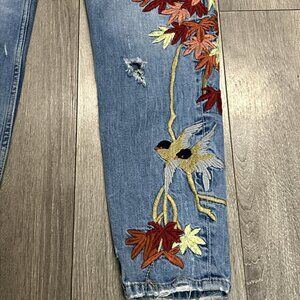 ZARA Women's Slim Boyfriend crop Jeans with Embroidery(Blue, US 4, EUR 36)