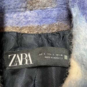 ZARA Wool Blend Blue Plaid Fully Lined Jacket / Shacket w/ Pockets US Sz S