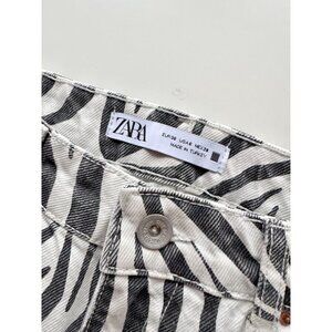 ZARA Zebra Print Denim High Rise Straight Leg Mom Fit Jeans, Size 6/28