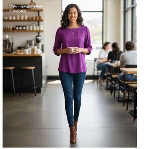 ZARA basics , Stunning royal purple satin crewneck blouse