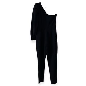 ZARA black One shoulder Puff Sleeves jumpsuit size Medium
