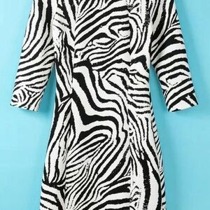 Zara black White long Sleeve Zebra Print Bodycon cocktail mini Dress Sz M