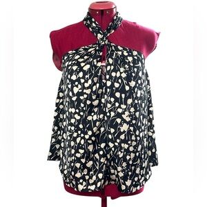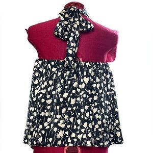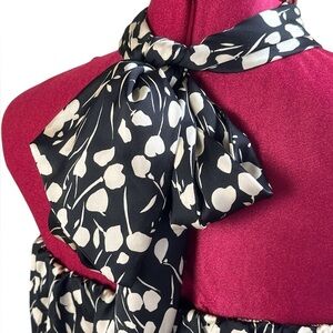 Soft, flowy and cool to the touch. Great for a summer evening out or to layer on a cooler day. There is a small fibre pull under the left arm pit. It doesn’t affect the wear or appearance. 100% polyester