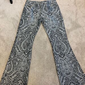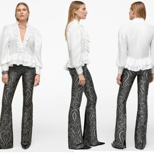 Zara black silver jacquard pants limited edition Sz M NWT New with tag Mid rise Side hidden inseam pockets with back false welt pockets Flared legs with slits Zipper and metal hook closure Metallic threading Paisley type of print May be slight difference in colour due to lighting. Measurements are approximate. Bundle more through my closet to save on shipping. New to Poshmark? Earn $15 🤑 When you sign up with my code: Americanglam ➡️Item recorded to prevent switching of product⬅️ 10920222b5/3pe