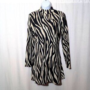ZARA bodycon MINI DRESS Sz SMALL ZEBRA PRINT LONG SLEEVES made in MOROCCO