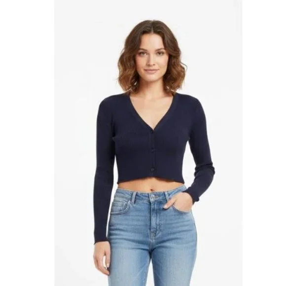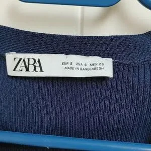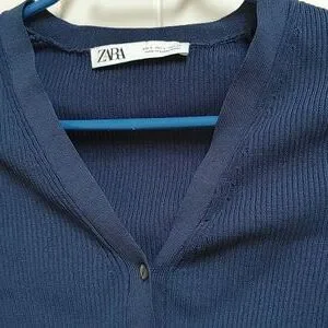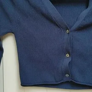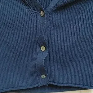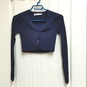 ZARA dark blue ribbed cropped long sleeves button up top shirt Small