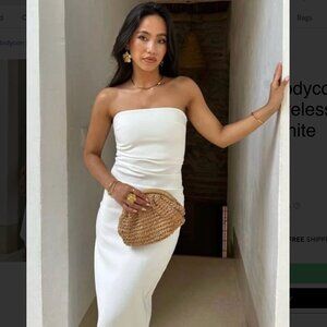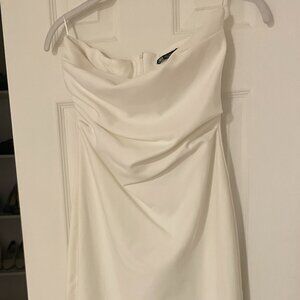 ZARA dress bodycon strapless sleeveless tailored midi white wedding party