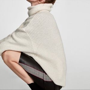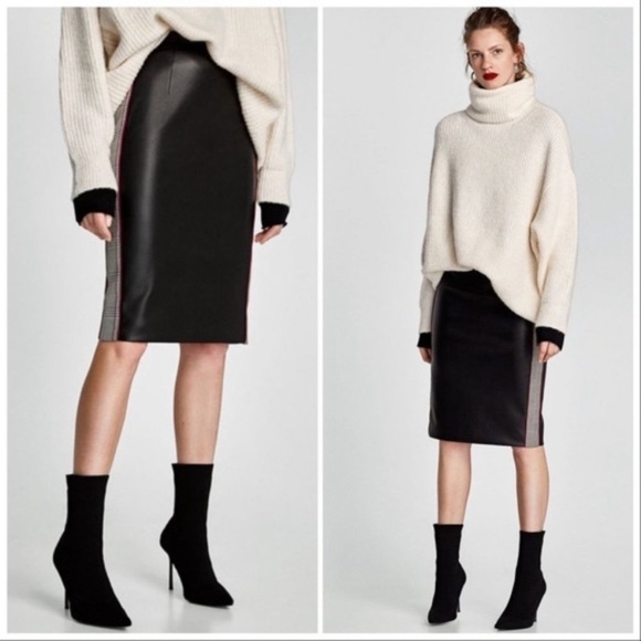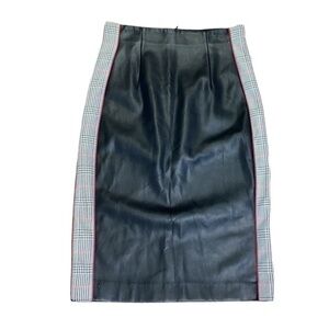 ZARA faux leather midi skirt with houndstooth stripes Size Medium