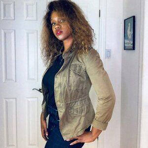 ZARA green fitted utility jacket spring khaki jacket women size medium