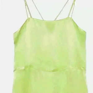 ZARA lime green satin Spaghetti straps cross at back long dress size XS