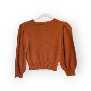 ZARA l/s rich russet/rust puff-sleeve cotton/nylon blend knit in EUC size S