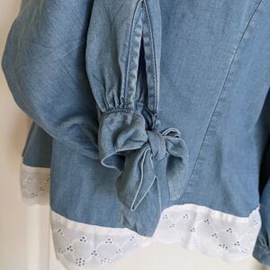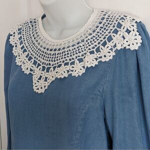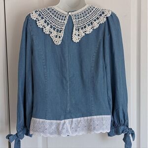 ZARA reworked denim blouse detachable crochet collar and lace edge Small @L