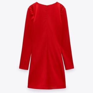 red ruched high collar cinched tweed dress tank pearl chanel sold out green zara