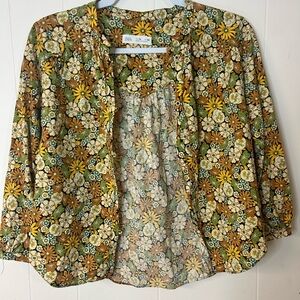 ZARA, size 10, youth girls button up 70’s floral print long sleeve shirt