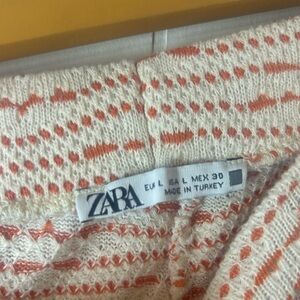 ZARA size L, Striped Cream and Orange Women's Pants, cropped/ankle, cotton blend