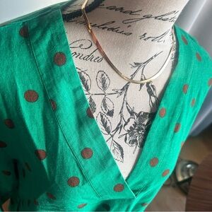 ZARA size small green dot print top. Linen blend, 3/4 length sleeves