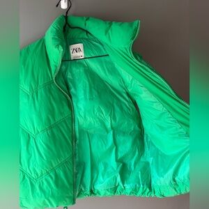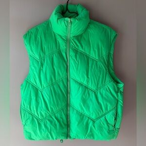 Stay warm and stylish with this vibrant green puffer vest. Perfect for layering, it adds a pop of color to any outfit.
