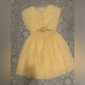 ZARA sz 11-12 years light yellow linen dress with front wait tie, button up