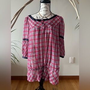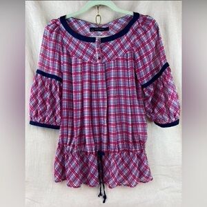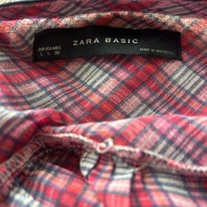 ZARA sz L peasant style top blue ribbon trim gathered sleeves drawstring waist