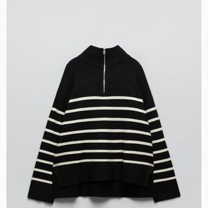 ZARA textured oversized cropped half zip Sweater