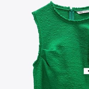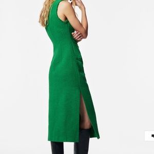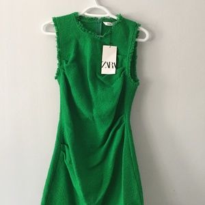 Zara ruched tweed dress midi green color holiday party no sleeve