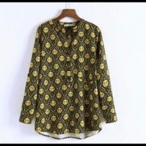Zara yellow black print button down blouse size XS. Excellent condition never worn.